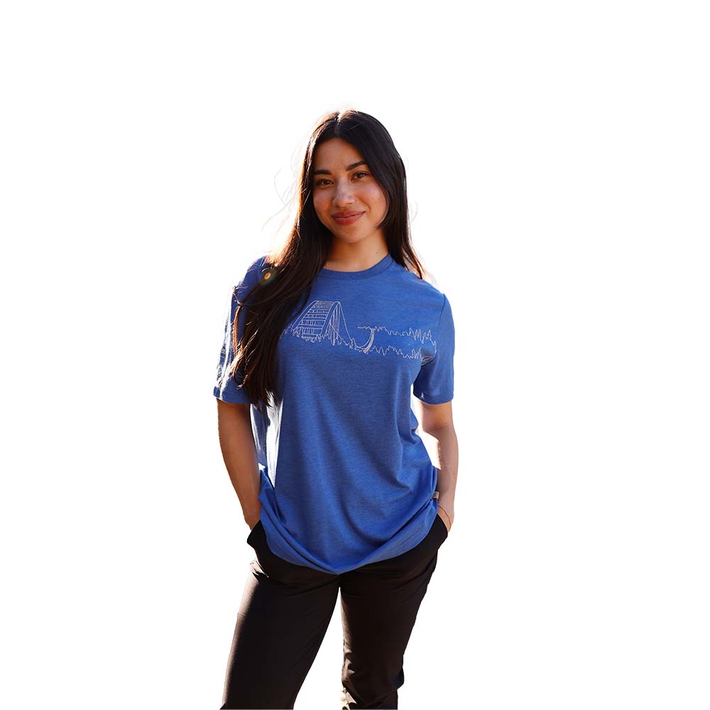 This earth-friendly tee showcases the Boyne Mountain SkyBridge nestled amongst the trees, making it the perfect reminder of your walk on the wild side. Made from tentree's signature TreeBlend fabric, 45% Recycled Polyester, 30% TENCEL™ Lyocell, and 25% Organic Cotton, this t-shirt has a super soft handfeel and plants ten trees!