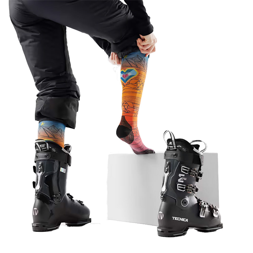 The virtually seamless™ toe design and wear-reducing Shred Shield give the Smartwool Ski Zero Cushion Geo Peaks Print OTC Socks the elevated on-piste performance you need each ride. Woven with indestructawool™ technology in high-wear areas to keep you and these OTC socks going for longer, the 4 Degree™ Elite Fit System that dials in your fit and feel with