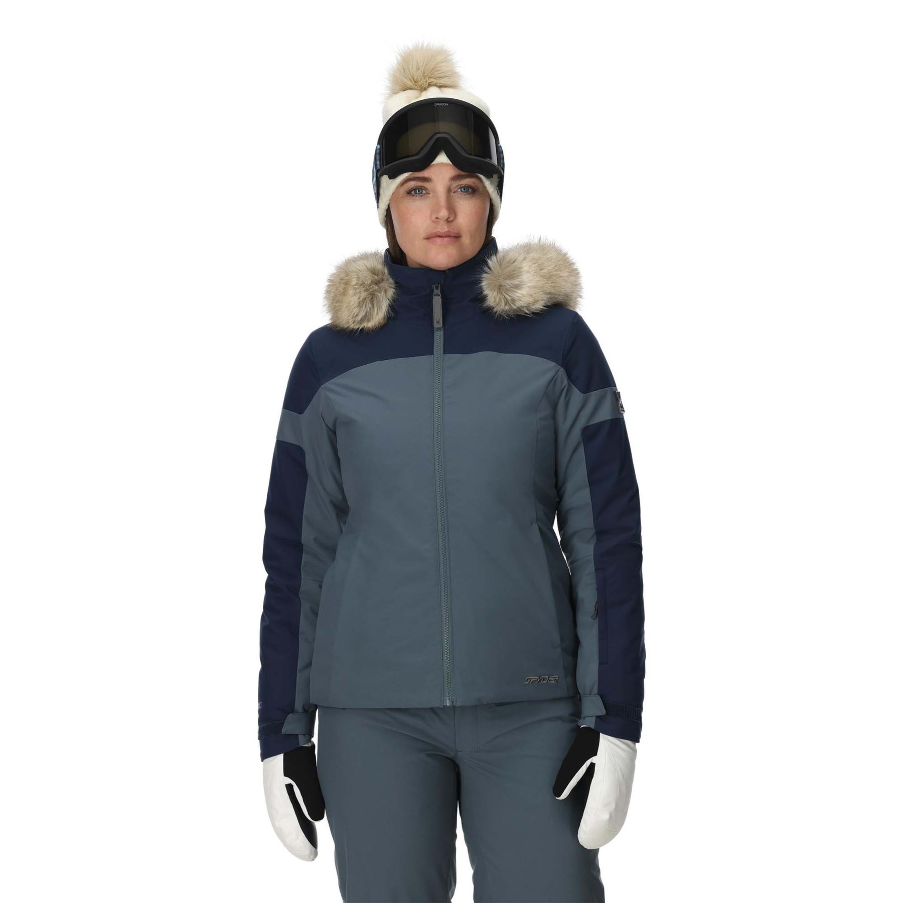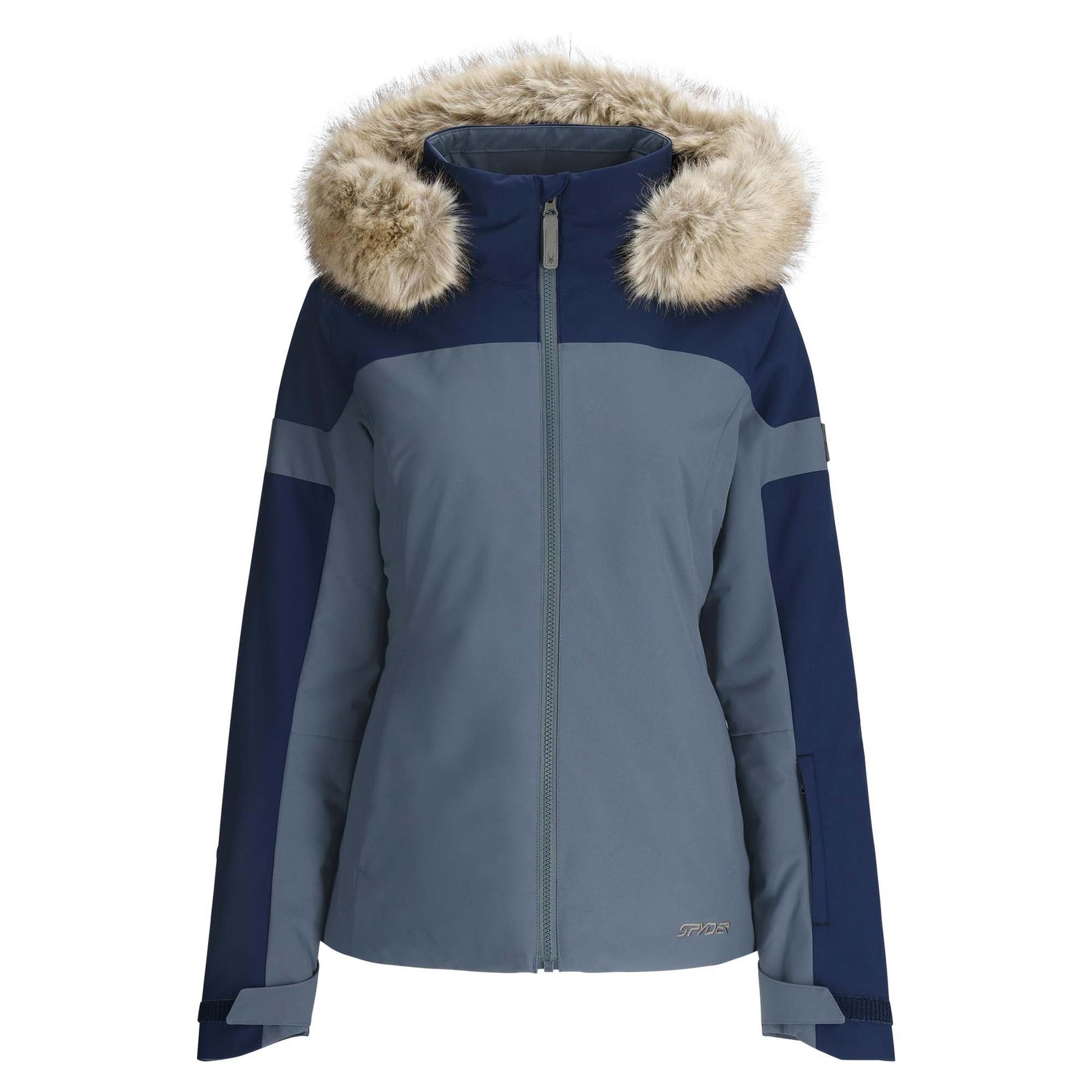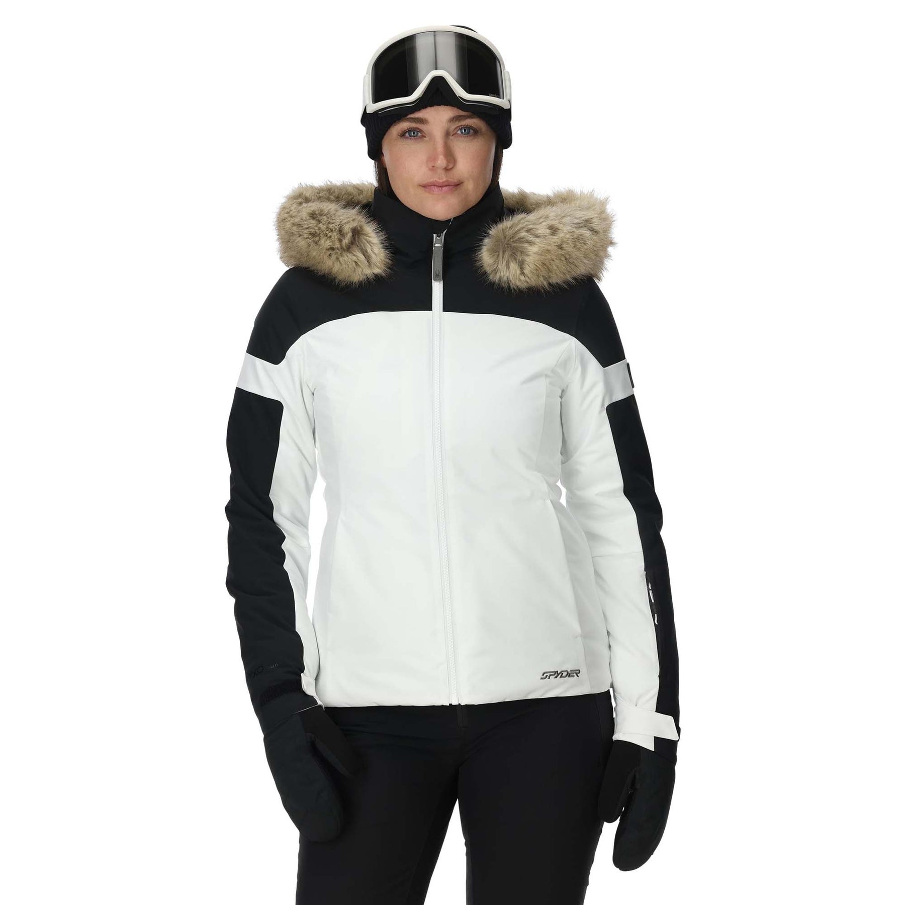 Embrace style and performance like never before with the Spyder Women's Vida Jacket, built for technical, mountain-ready adventure all winter long. Extend your ski session with tons of eco-friendly insulation to keep you warm through the chill, and ride through the snowstorm with high-level 20K waterproofing and a water-repellent finish. The hood features removable faux-fur trim to add a touch of cozy, feminine style to your resort look, and the underarm vents let you adjust your comfort as you move. Plus, convenient multi-purpose pockets keep your essentials close during every snowy escape, so you can carve into cold-weather fun with ease.
