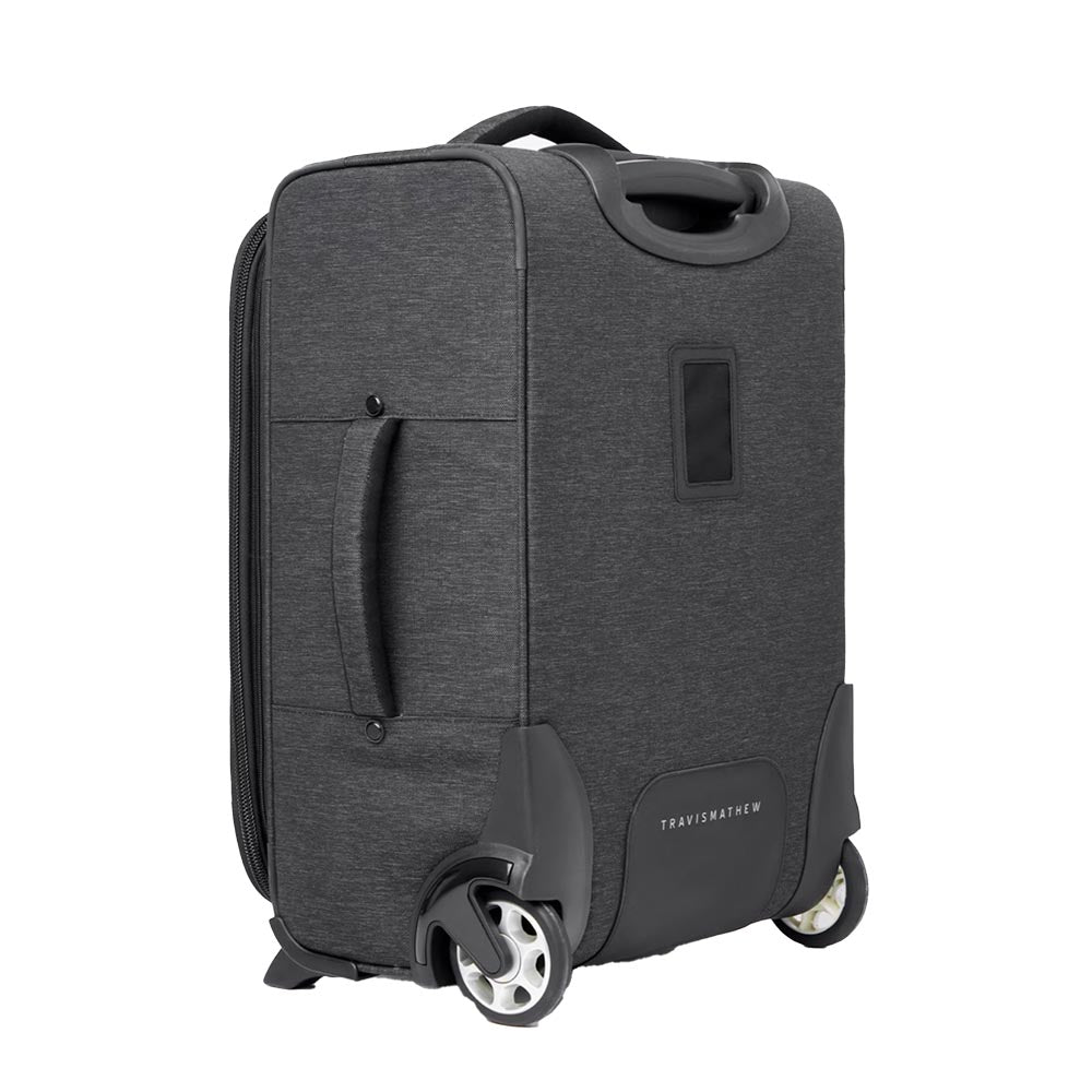 If you want a streamlined travel experience this vacation season, you better gear up with the TravisMathew Carry On 2.0. This travel bag is key to simplifying your luggage so you can cruise through the terminal and take over the resort without snags or slowdowns. Glide into your destination with two smooth rolling wheels, a telescoping handle, and two padded grab handles for fast, efficient maneuvering in the taxi, the airplane, and the hotel lobby. Pack for a trip extension with large storage expansion, interior organization pockets, and interior compression straps for more space and more security. Because it's sized to meet most carry-on restrictions and comes equipped with a durable Hypalon kickplate and corner guards, you know you can leave all your worries behind at home with this premium travel carry-on.