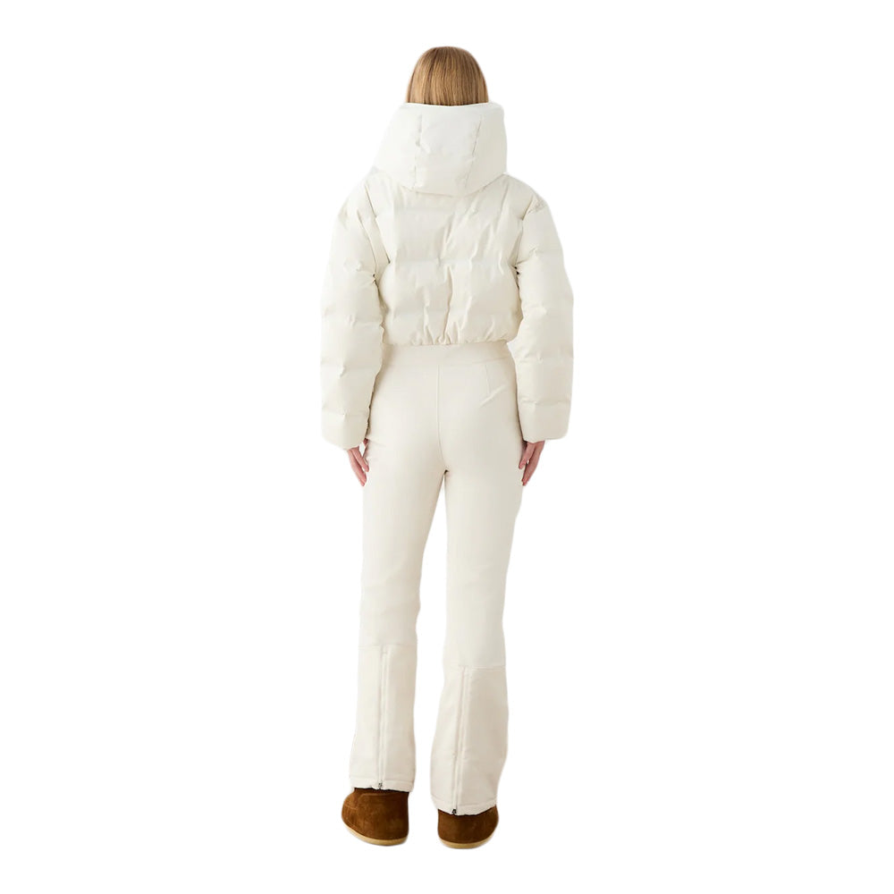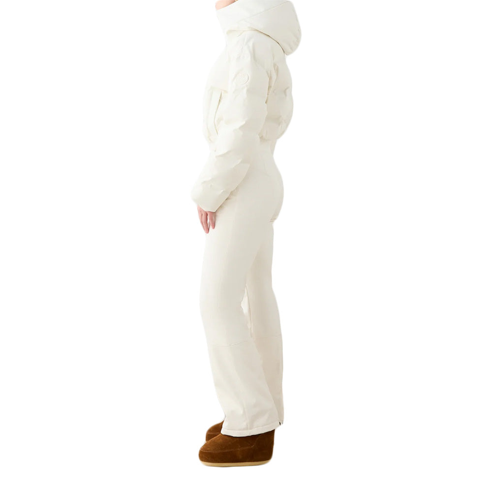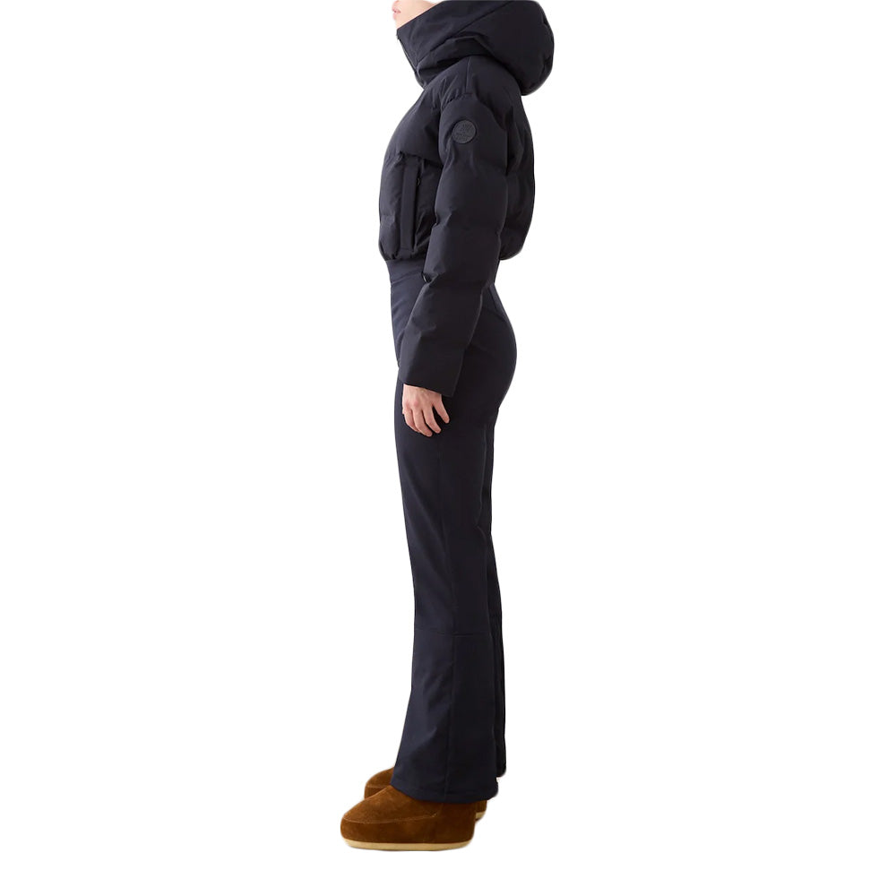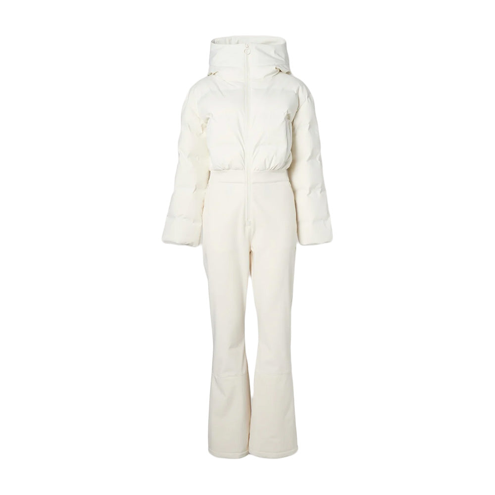 The top to bottom total winter coverage of the We Norwegians Women's Aurora Ski Suit only enhances its elevated design that's thoroughly crafted with 15K/10K breathable waterproofing in the top and 10K/5K in the bottom for comfy cold weather protection. Packed with responsibly sourced  duck down for natural warmth, the stretchy fleece interior lining adds warm softness to these season staples. Fitted with a helmet compatible hood you can wear with your favorite headgear, plus snap-button snow gaiters and zippered gussets, it doesn't matter the conditions or terrain, the Aurora Ski Suit has you covered.